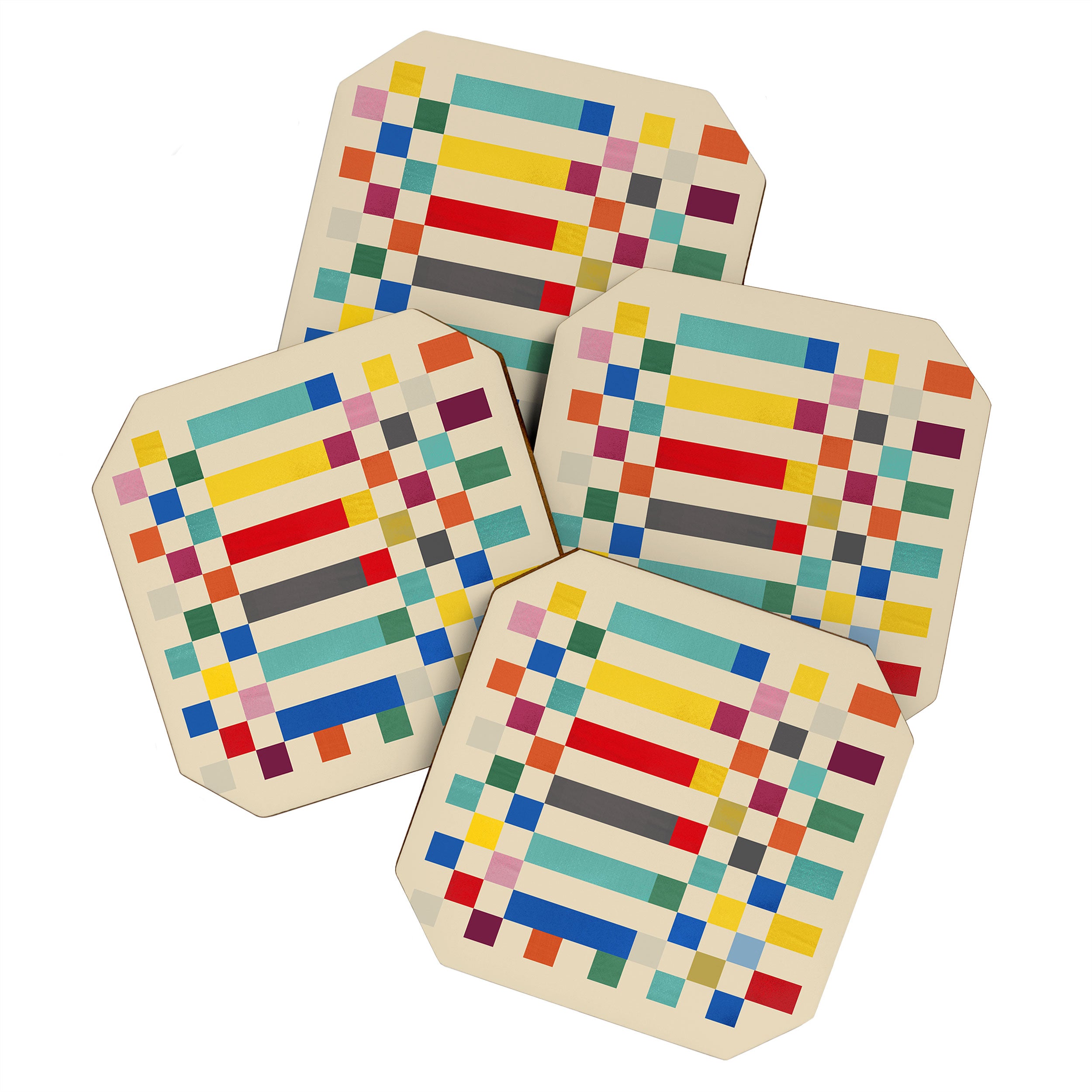 Showmemars Modern Playful Checkered Abstract Coaster Set