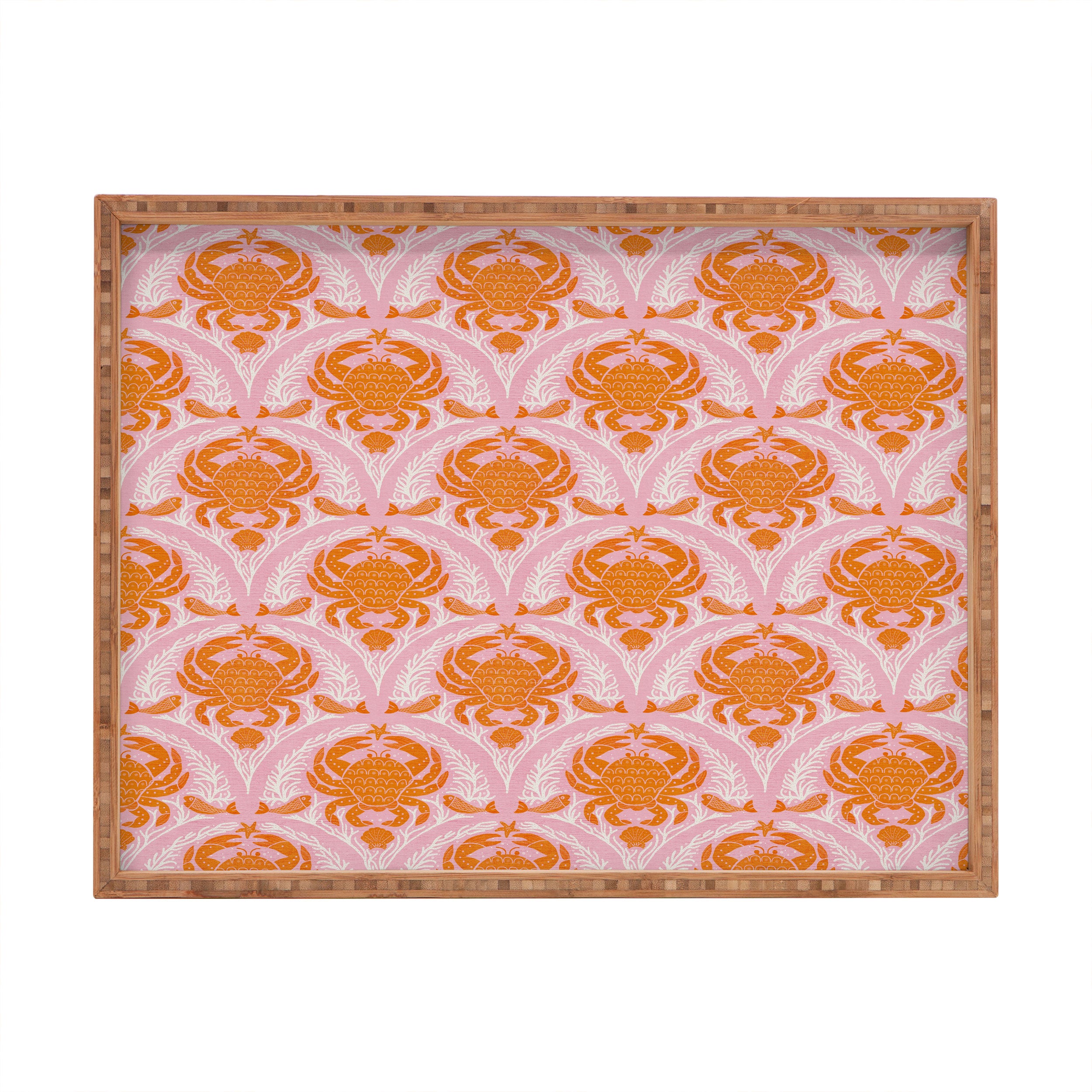 Showmemars Orange Crab On Pink Pattern Rectangular Tray