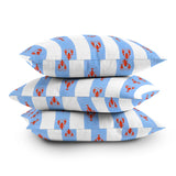 Showmemars Red Lobsters On Blue Stripe Throw Pillow