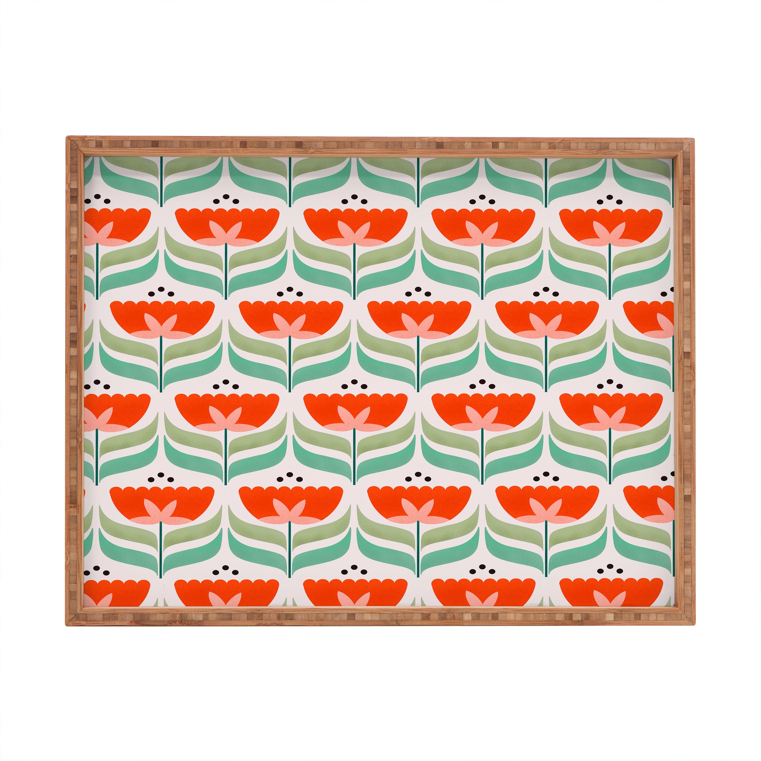 Showmemars Retro Tulips Pattern Rectangular Tray