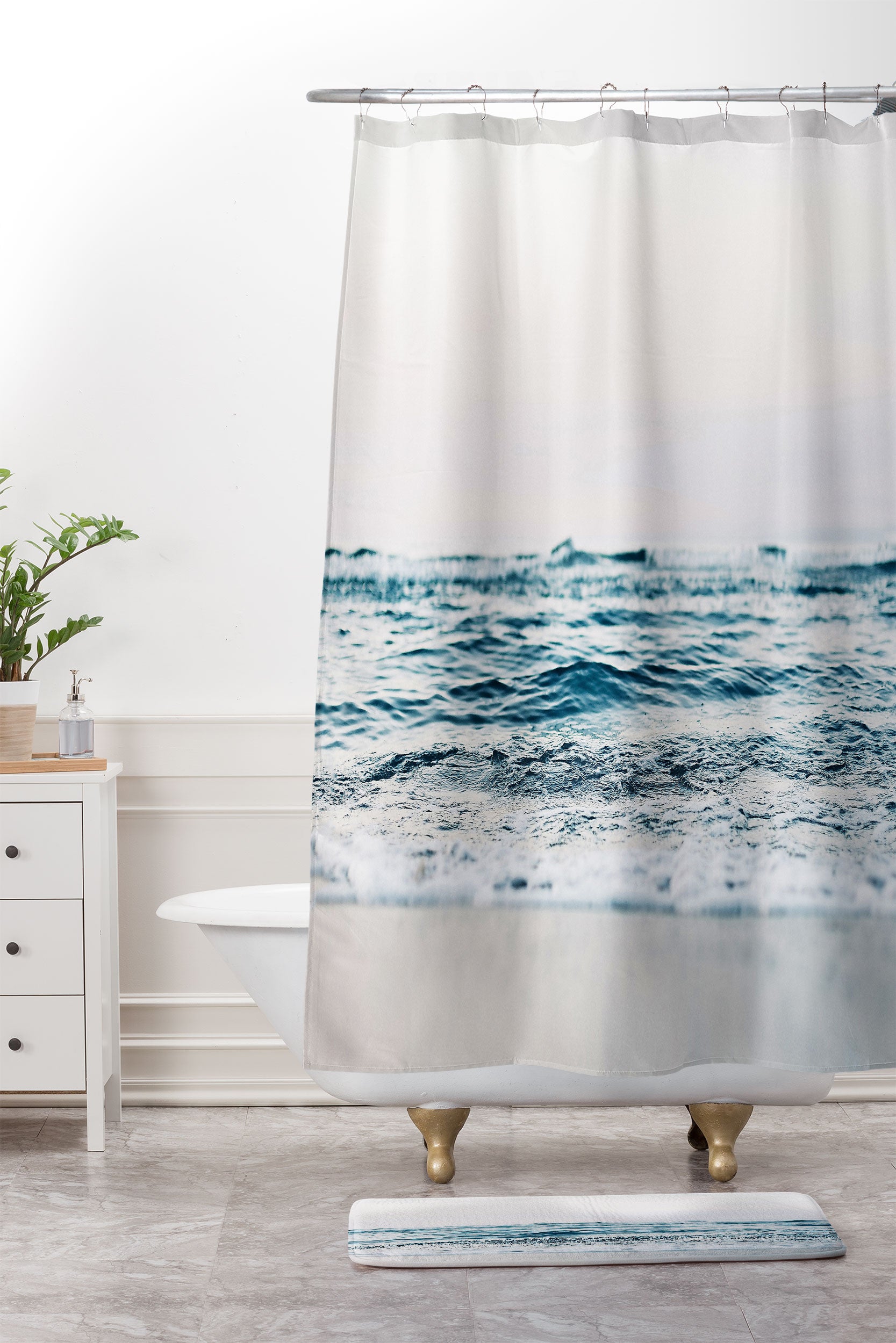 Sisi and Seb Minimalist Ocean Shower Curtain And Mat