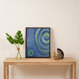 Drawn to the simplicity of form and continuity of shape, these designs are clean and modern with references to the natural world represented by maps or other visual cues. Original paintings are in acrylic and collage on plywood or birch panels with a high-gloss resin top layer that intensifies the colors underneath.
