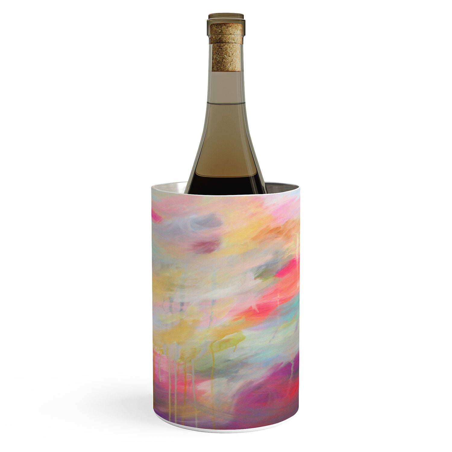 Keep the party going. The Deny Designs 57 oz wine chiller keeps a wine bottle cool for hours—simply slide the bottle into the canister and enjoy. Made from dishwasher safe stainless steel, they feature a curated array of designs wrapped around the outside to match any aesthetic. And the best part? Every purchase pays the artist who designed it—supporting creativity worldwide.