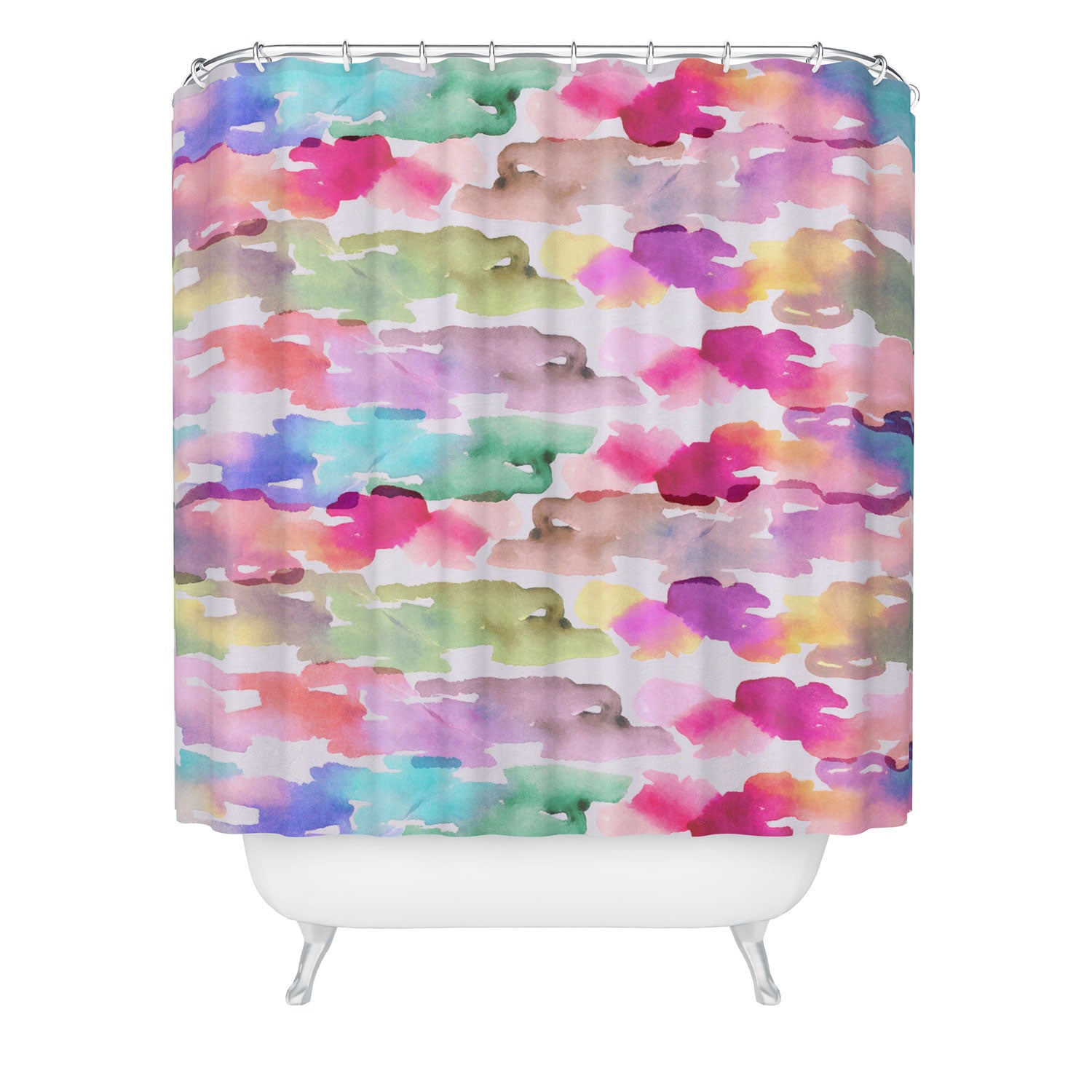 Set the stage. The Deny Designs shower curtain is crafted from 100% woven polyester and makes the perfect backdrop for whatever your bathroom decor may be. Adding some design to your shower curtains is a great way to make a statement in a room known for presenting plenty of design challenges. The buttonhole openings along the top means that you're free to use any curtain rings or hooks you please. And the best part? Every purchase pays the artist who designed it—supporting creativity worldwide.