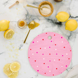 SunshineCanteen confetti dots pink red white Cutting Board Round