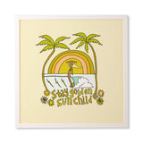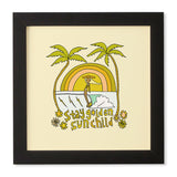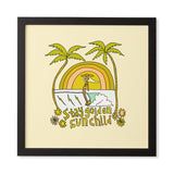 surfy birdy stay golden sun child retro surf Framed Wall Art