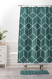 The Old Art Studio Cube Geometric 03 Teal Shower Curtain And Mat
