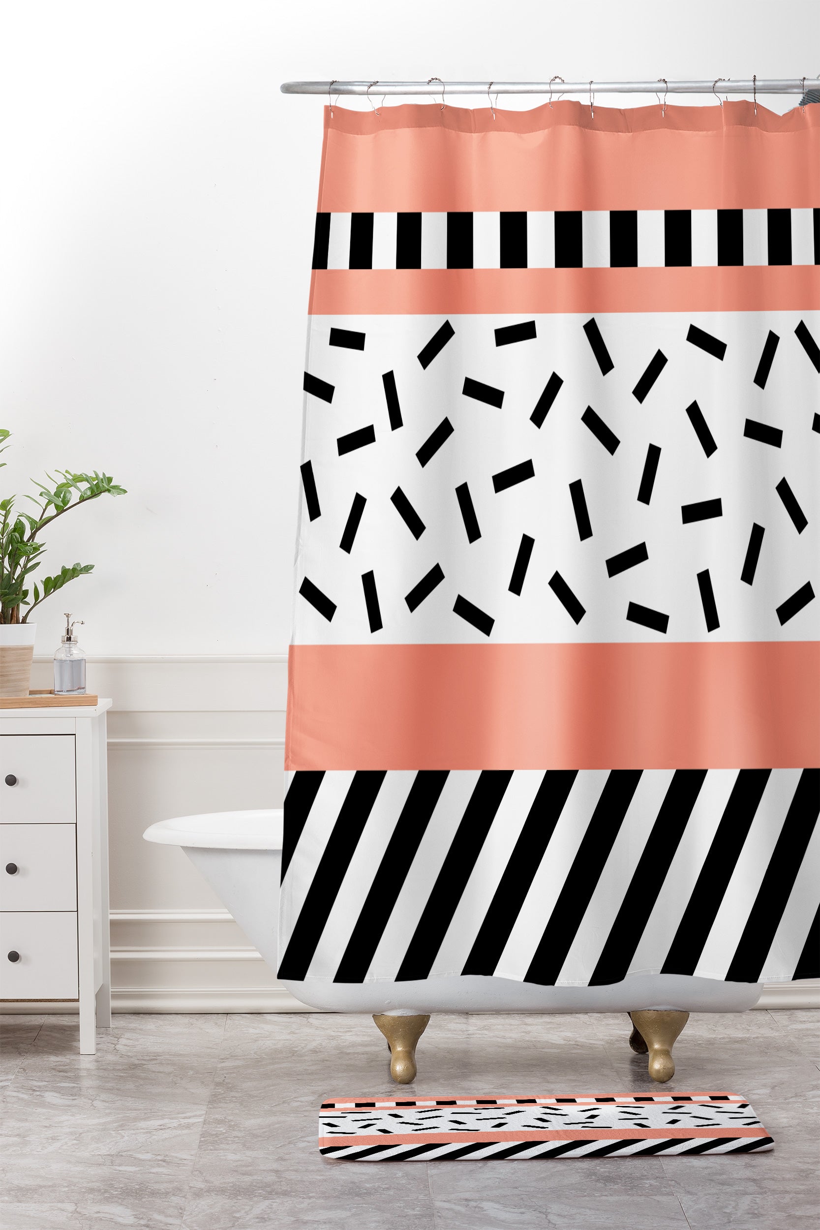 The Old Art Studio Memphis Geometric Peach Shower Curtain And Mat