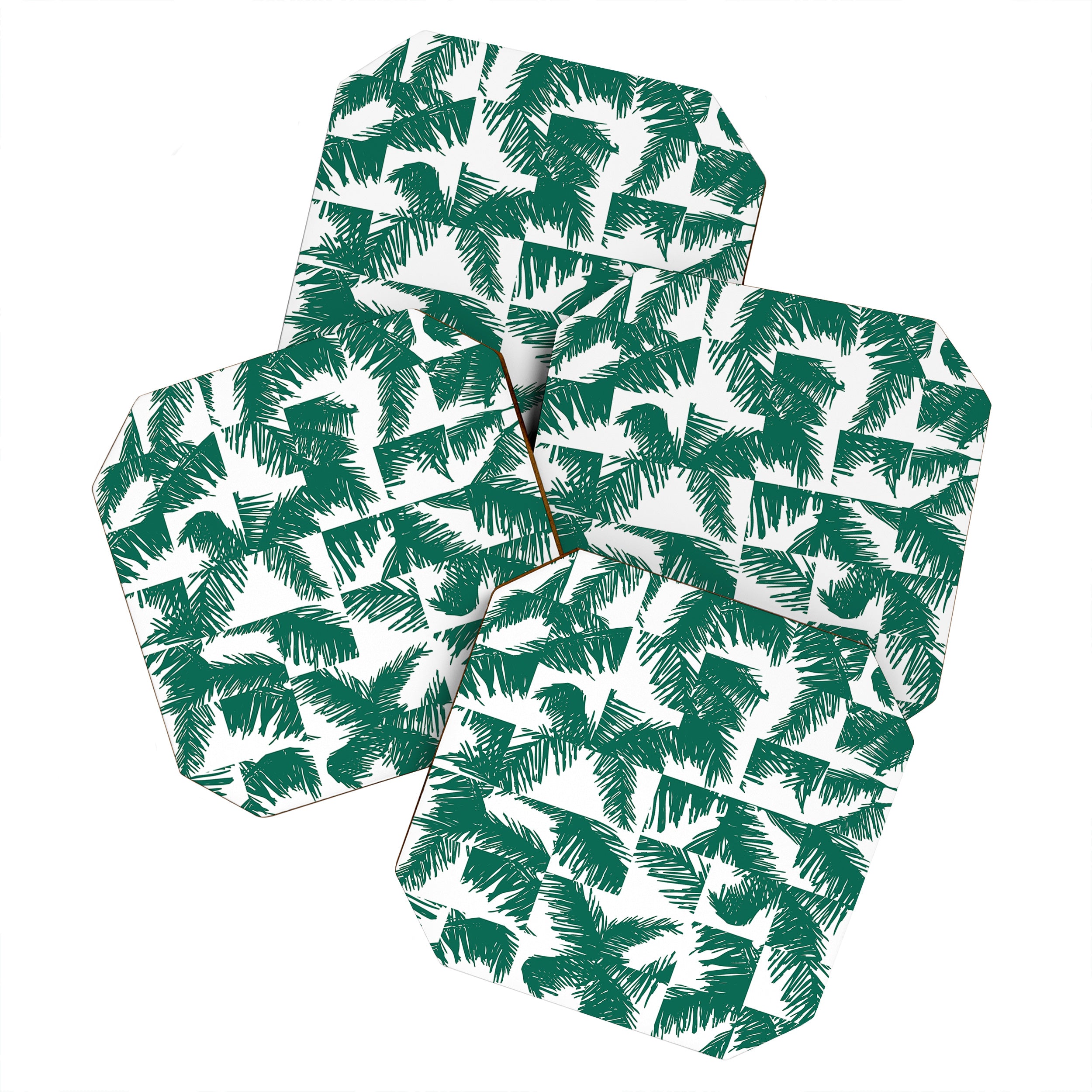 The Old Art Studio Palm Leaf Pattern 02 Green Coaster Set