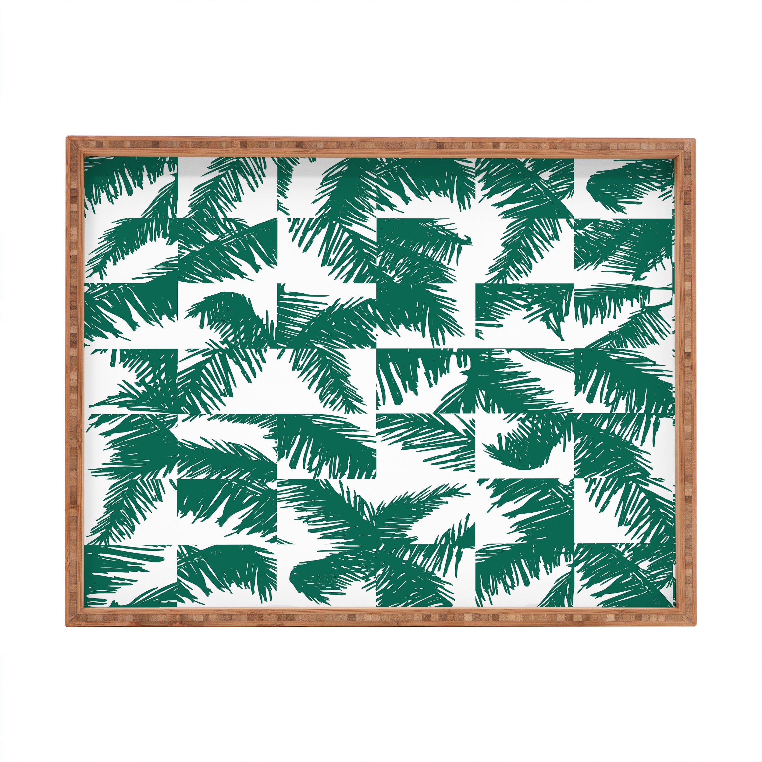 The Old Art Studio Palm Leaf Pattern 02 Green Rectangular Tray