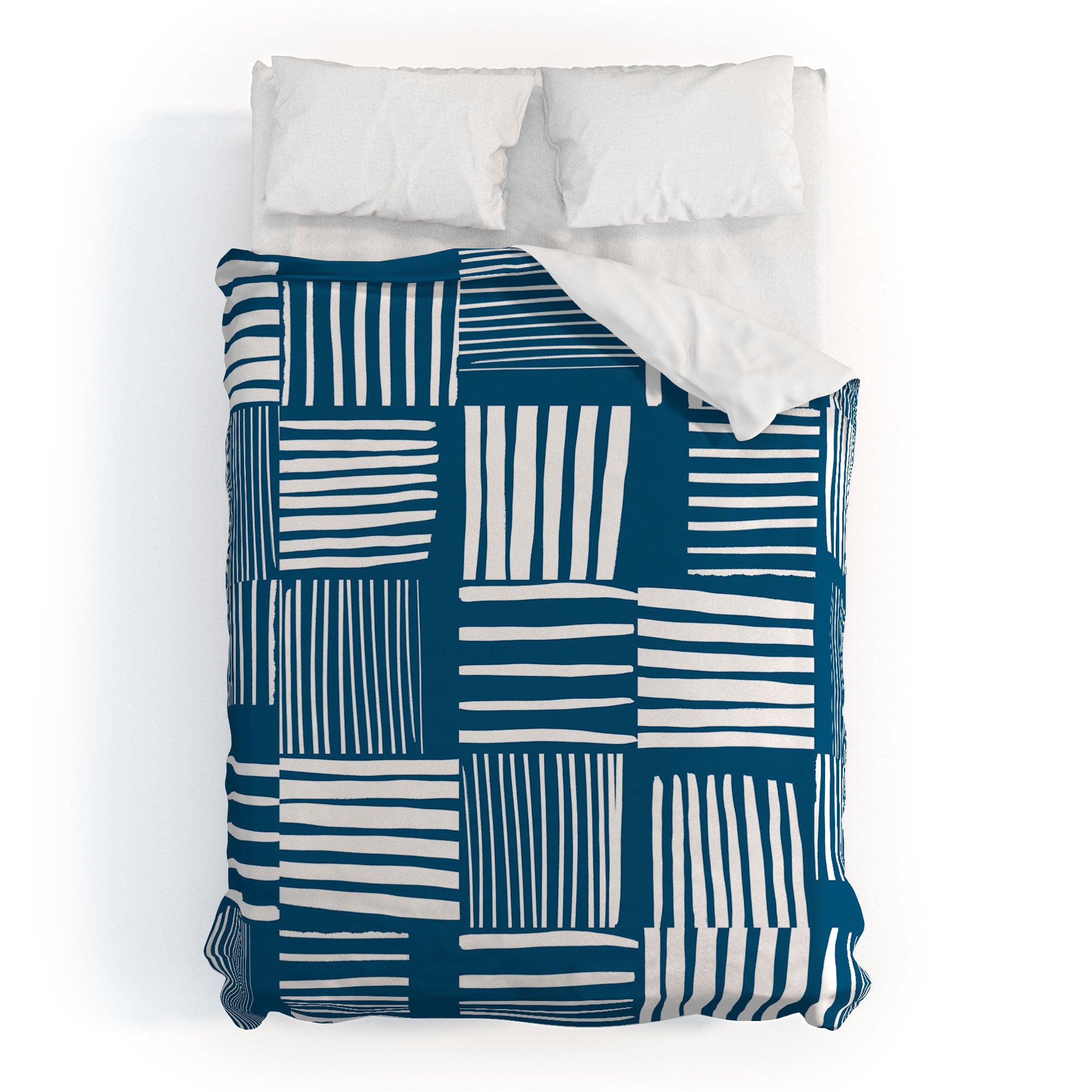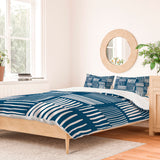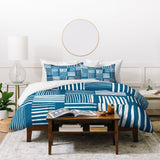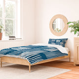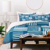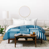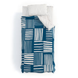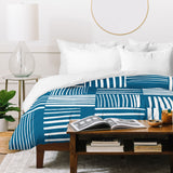 The Old Art Studio Torn Lines Abstract Pattern 04 Blue White Duvet Cover