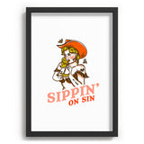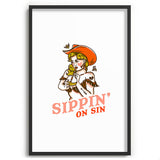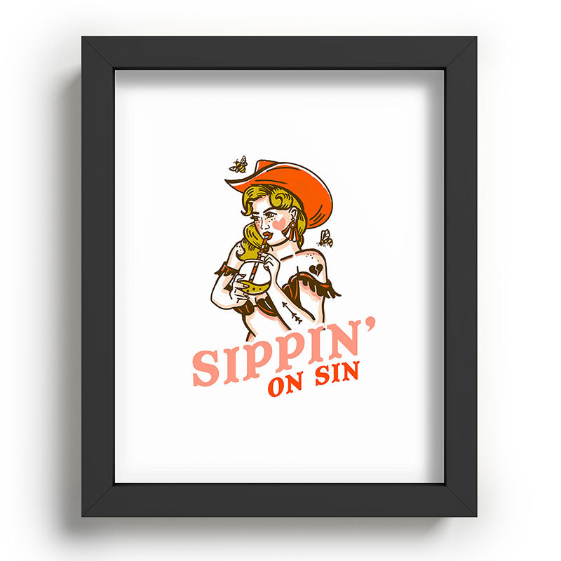 The Whiskey Ginger Sippin On Sin Retro Cowgirl Recessed Framing Rectangle