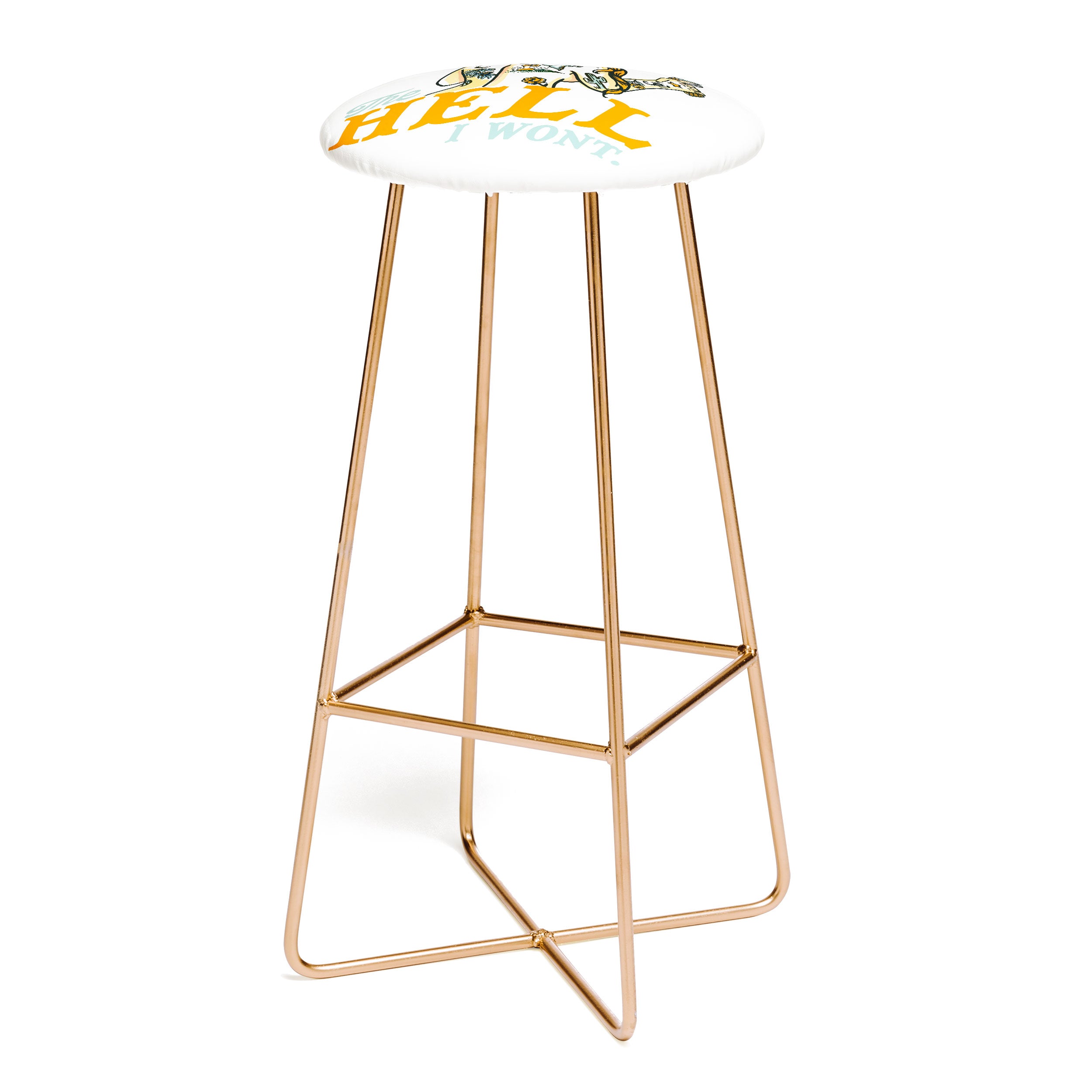 Saddle up, partner. The Deny Designs bar stool is the space-conscious and design-forward way to add seating to any space. Sleek, gently curved steel aston legs (available in black or gold) combine with the faux-leather upholstery for a modern yet unassuming stool. They feature a conveniently placed foot rest so your legs aren't left dangling, plus, you can select from our curated array of designs to match whatever your taste may be. And the best part? Every purchase pays the artist who designed it—supporting creativity worldwide.