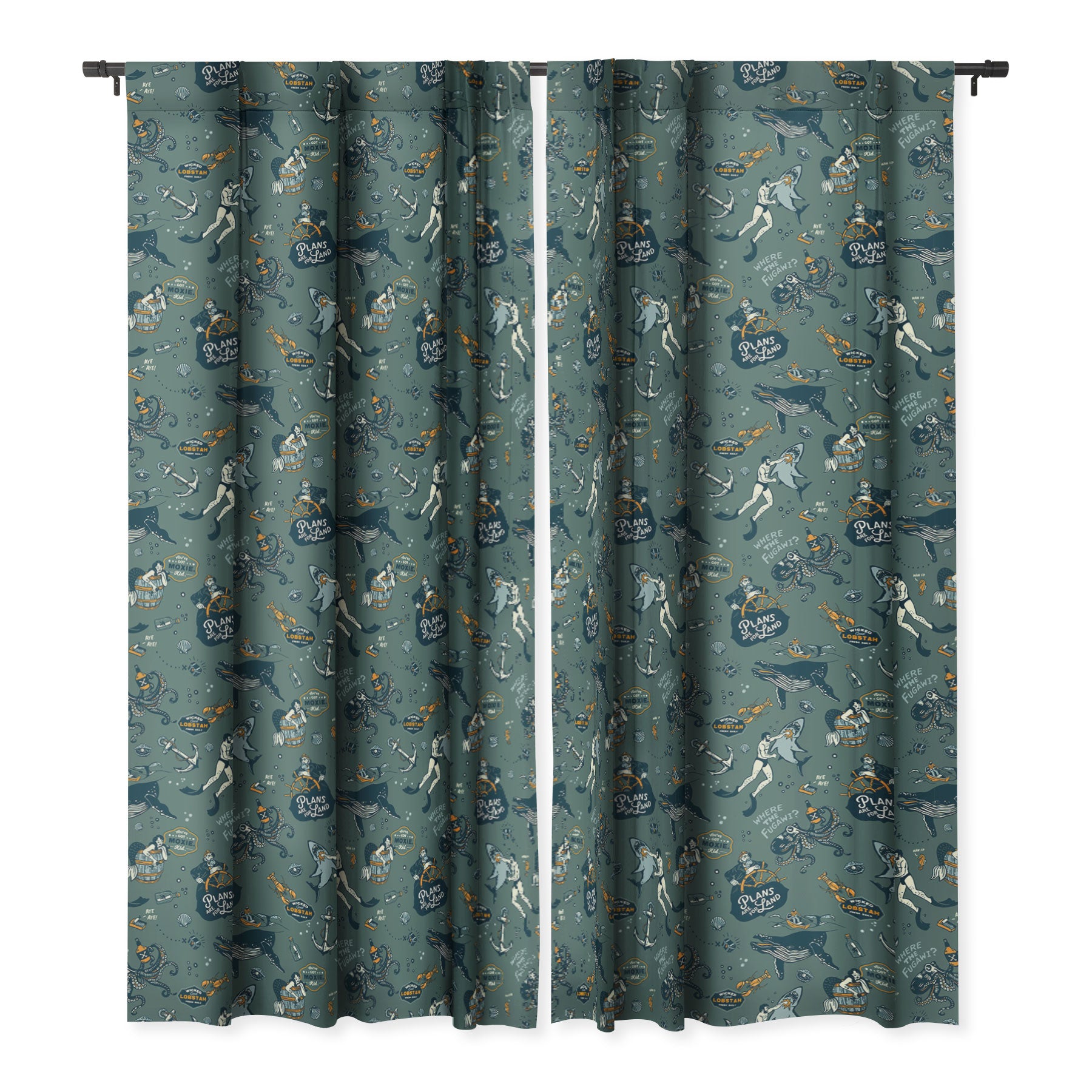 The Whiskey Ginger Vintage Ocean Pattern Blackout Window Curtain