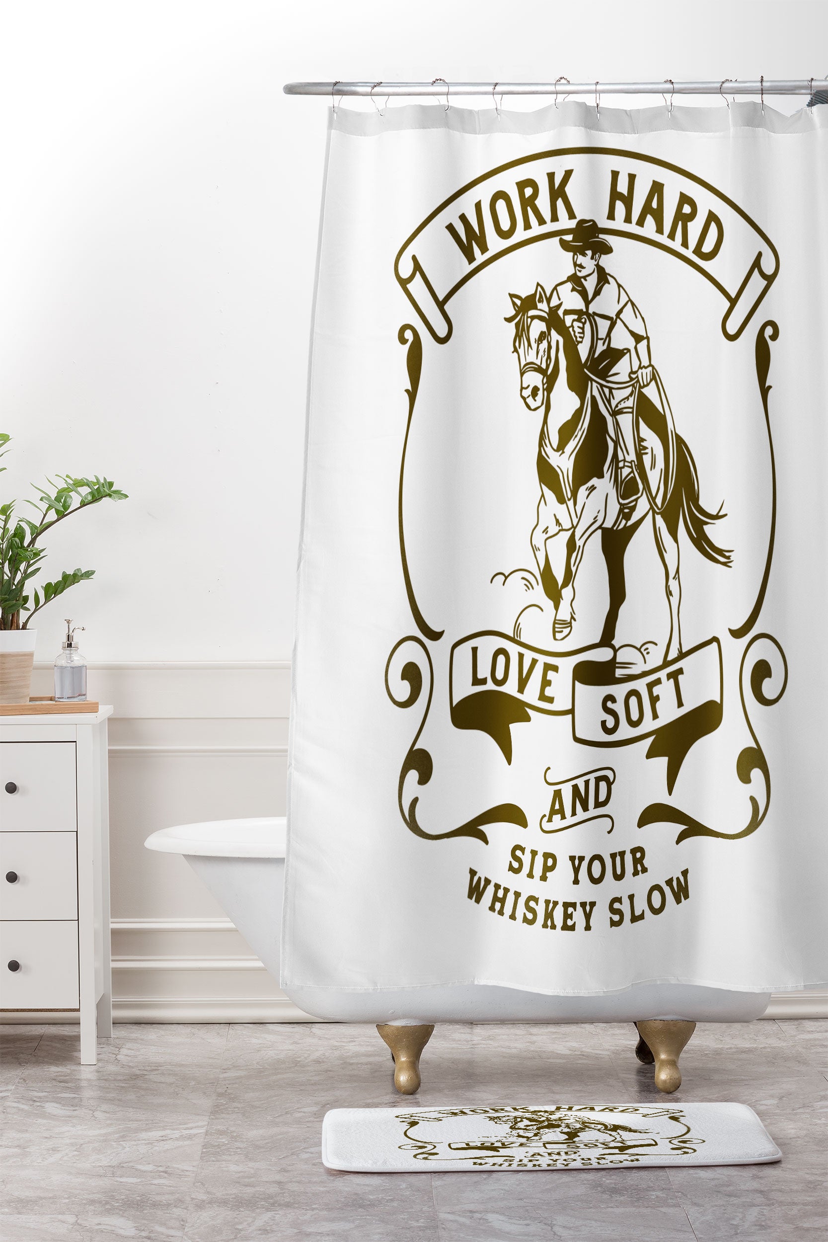 The Whiskey Ginger Work Hard Love Soft and Sip Your Whiskey Shower Curtain And Mat