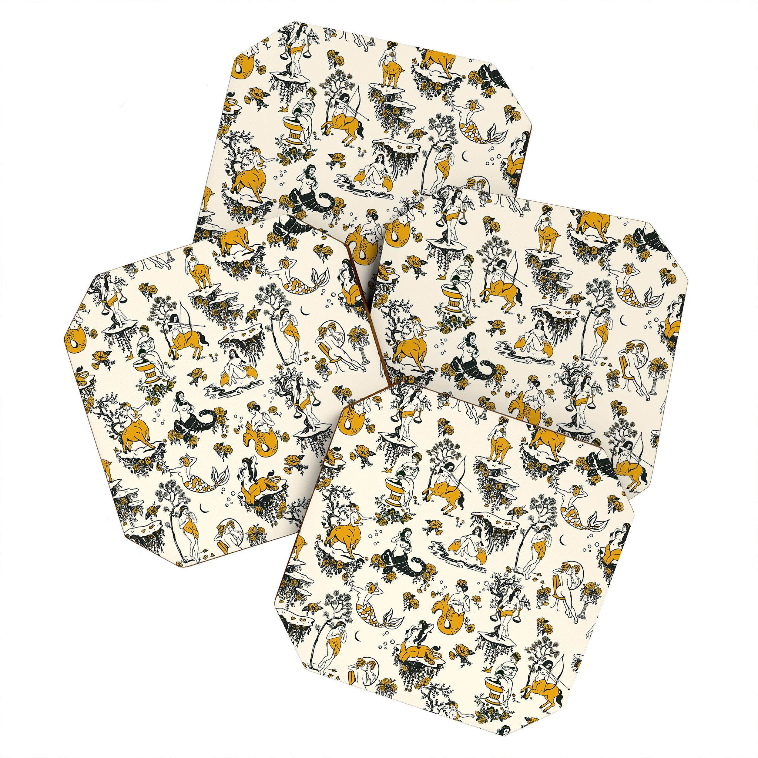 The Whiskey Ginger Zodiac Toile Pattern With Cream Coaster Set
