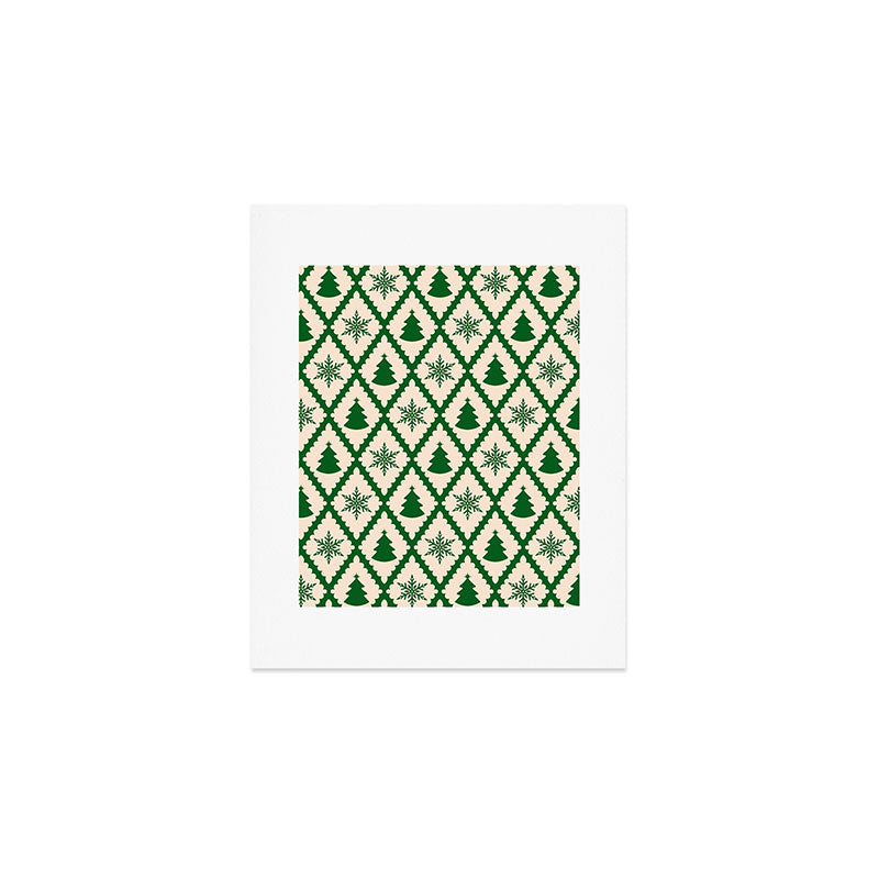 thespacehouse Festive Christmas Check Green Art Print