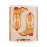 thespacehouse Howdy Cowboy Boots Orange Throw Blanket