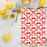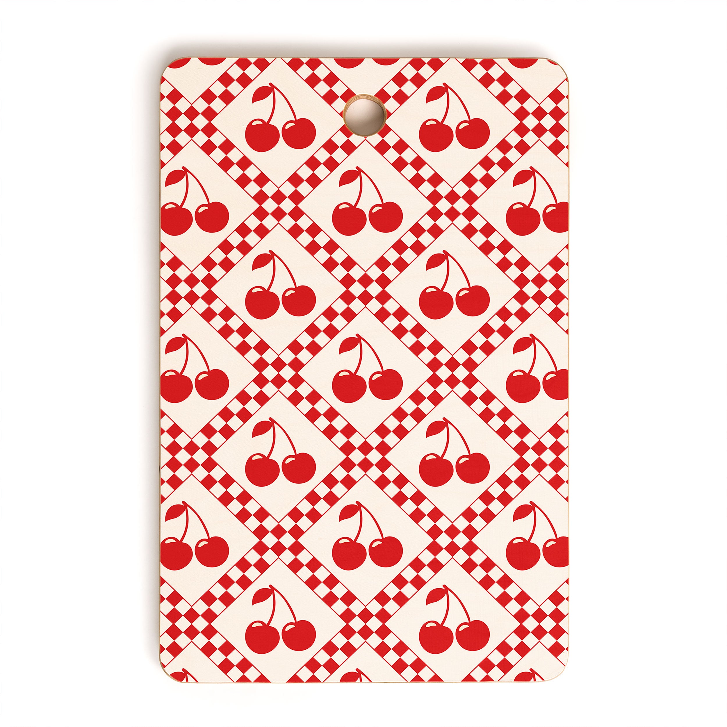 thespacehouse Red Cherries Beige Checker Cutting Board Rectangle