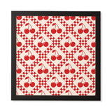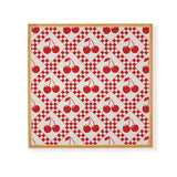 thespacehouse Red Cherries Beige Checker Framed Wall Art