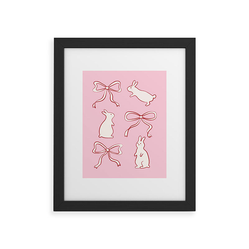 thespacehouse Ribbon Bows and Bunnies in Red Framed Art Print