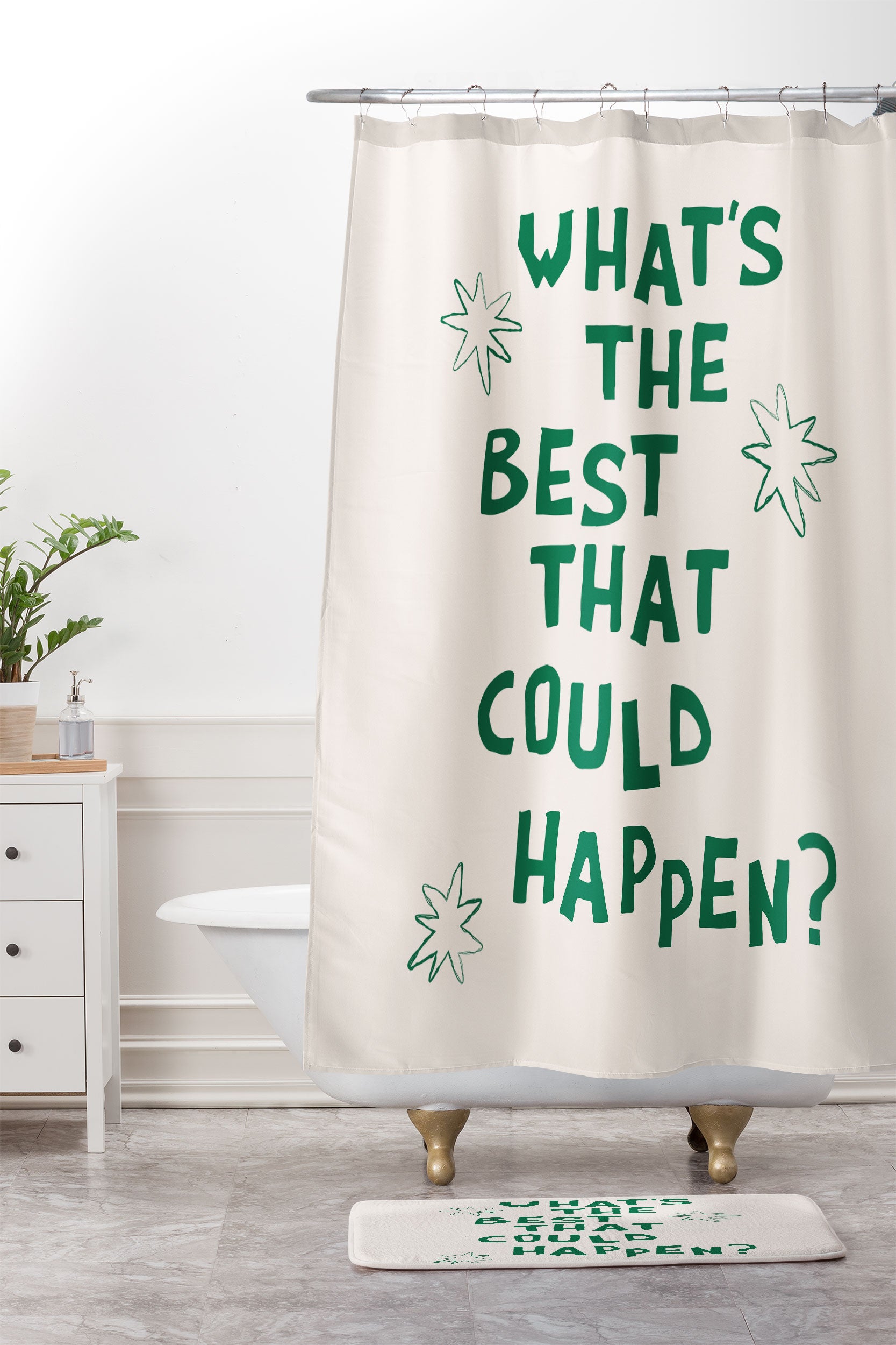 thespacehouse Whats The Best That Could Happen 3 Shower Curtain And Mat