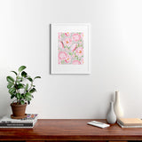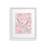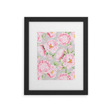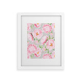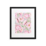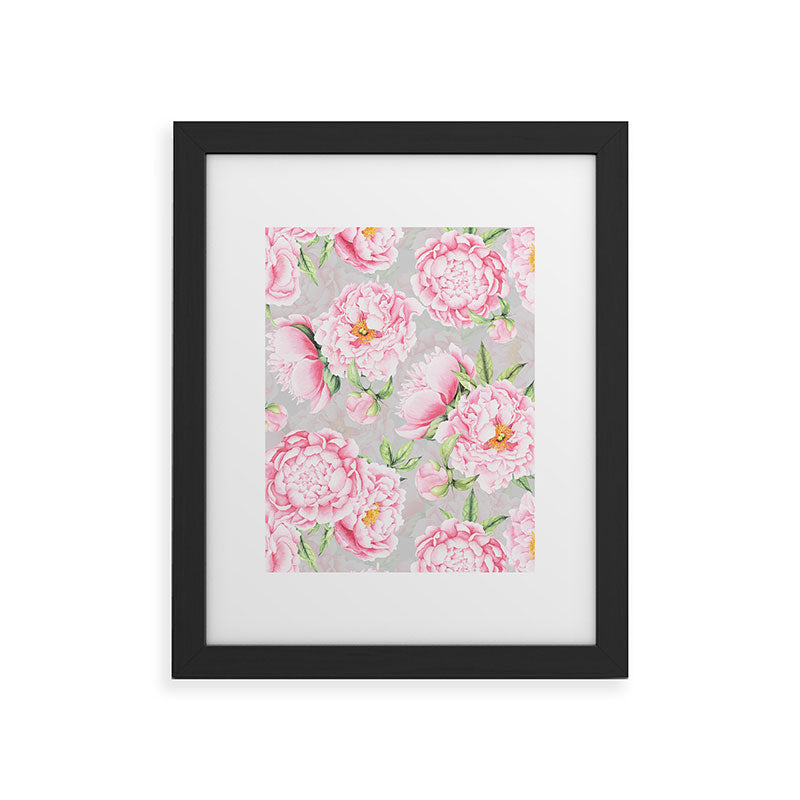 UtArt Hygge Blush Pink Peonies Pattern on Gray Framed Art Print