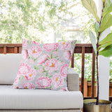 UtArt Hygge Blush Pink Peonies Pattern on Gray Outdoor Throw Pillow