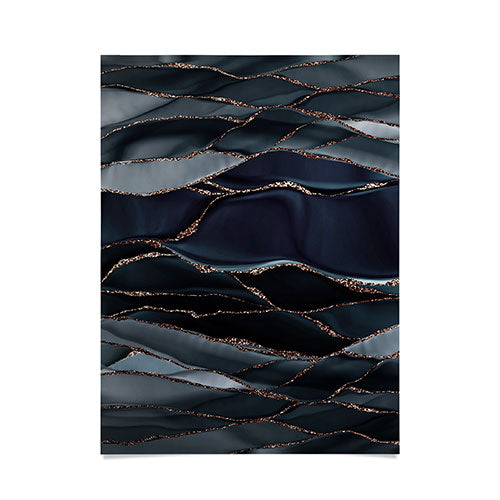 UtArt Midnight Marble Deep Ocean Waves Poster