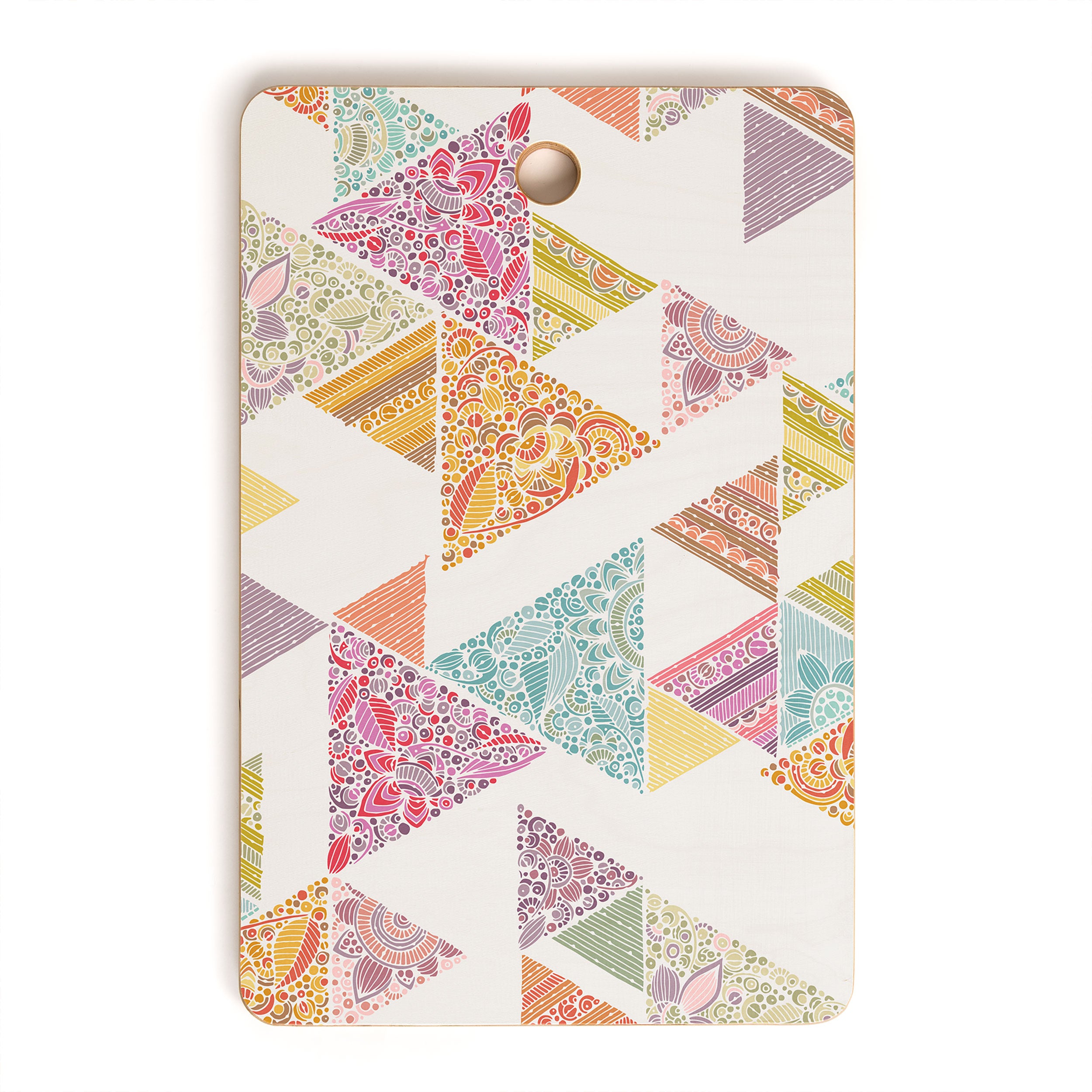 A must-have kitchen accessory any way you slice it. The Deny Designs cutting board is made from bamboo wood that won't look too heavy when integrated into your kitchen decor. Available in array of curated designs, the display side is printed with a satin finish that will pop when displayed on your counter or hung on the wall through the 1" handle. The prep side is a bamboo woodgrain that can be easily washed with a non-abrasive cloth. And the best part? Every purchase pays the artist who designed it—supporting creativity worldwide.