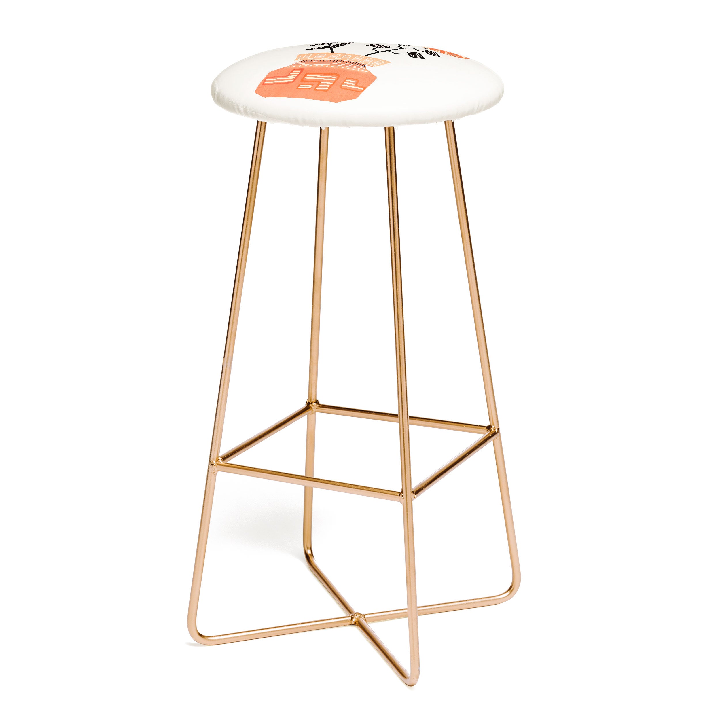 Saddle up, partner. The Deny Designs bar stool is the space-conscious and design-forward way to add seating to any space. Sleek, gently curved steel aston legs (available in black or gold) combine with the faux-leather upholstery for a modern yet unassuming stool. They feature a conveniently placed foot rest so your legs aren't left dangling, plus, you can select from our curated array of designs to match whatever your taste may be. And the best part? Every purchase pays the artist who designed it—supporting creativity worldwide.
