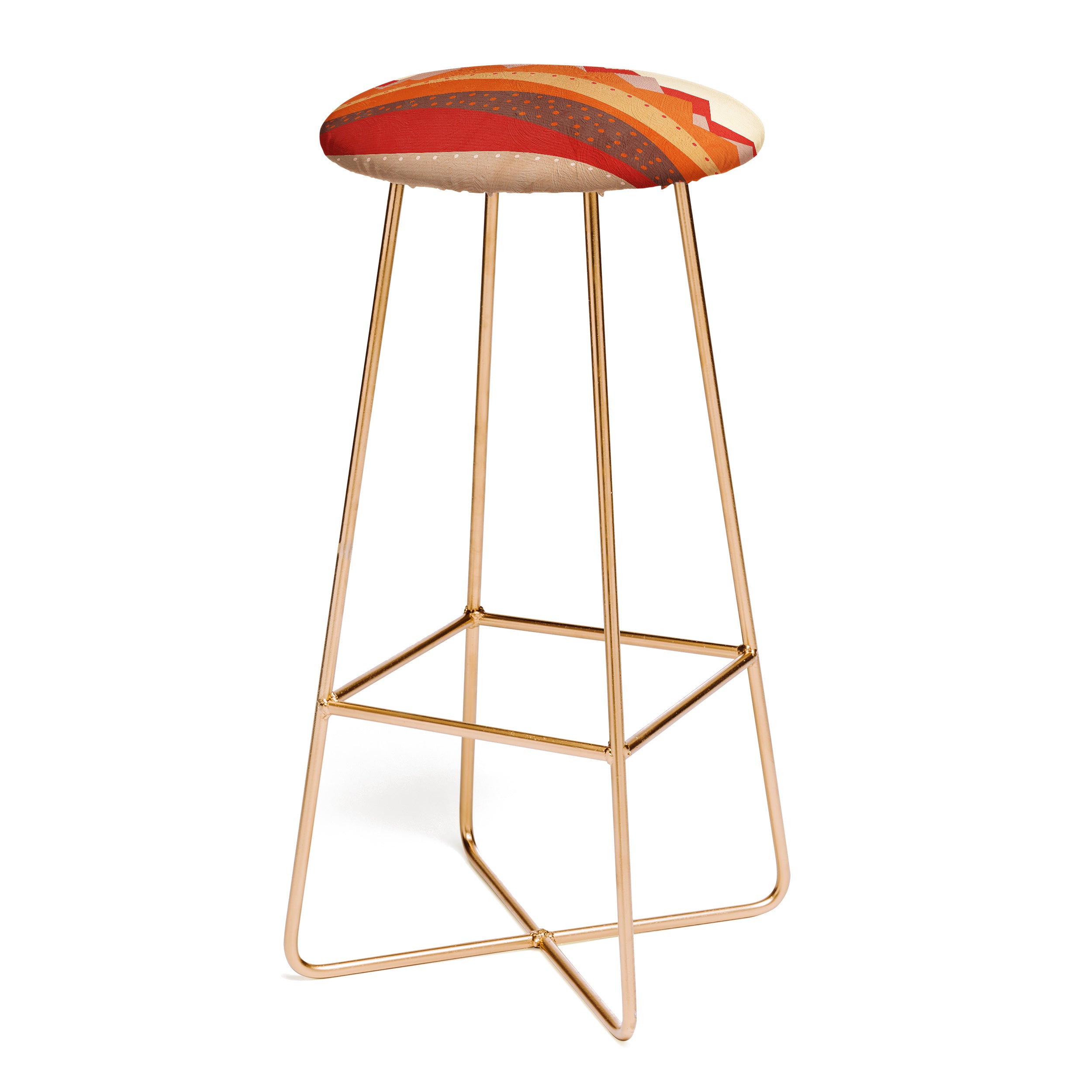 Saddle up, partner. The Deny Designs bar stool is the space-conscious and design-forward way to add seating to any space. Sleek, gently curved steel aston legs (available in black or gold) combine with the faux-leather upholstery for a modern yet unassuming stool. They feature a conveniently placed foot rest so your legs aren't left dangling, plus, you can select from our curated array of designs to match whatever your taste may be. And the best part? Every purchase pays the artist who designed it—supporting creativity worldwide.