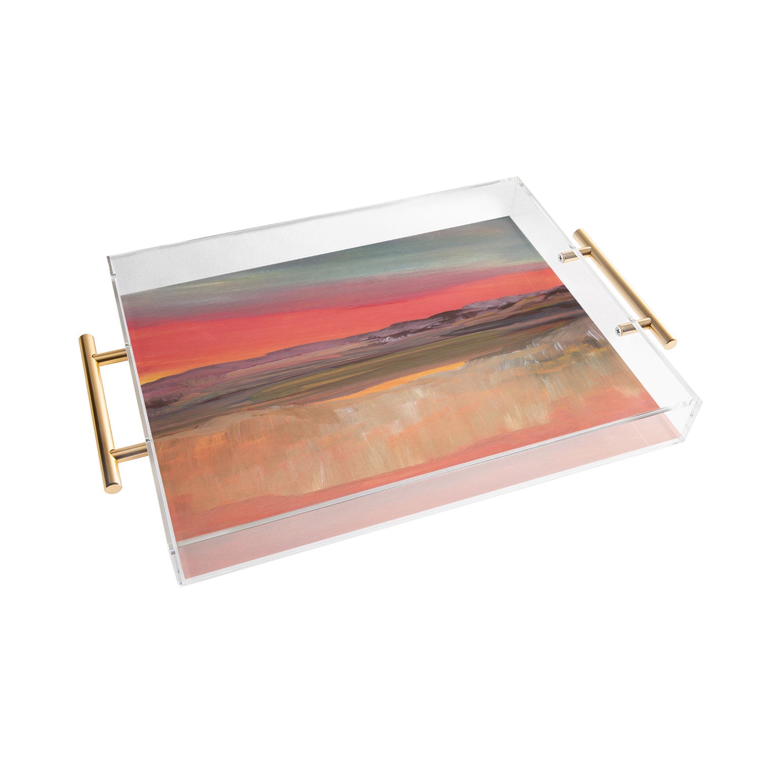 Tray chic. The Deny Designs acrylic trays come in a small and medium-size to accommodate all your countertop organizational needs. Featuring designs from our curated selection on the bottom panel, the acrylic trays can adapt to whatever decor style you love and the see-through side panels give them a modern flair. The medium-sized tray even comes with handles, allowing you to take it around the house for nail supplies or, dare we say, breakfast in bed! And the best part? Every purchase pays the artist who designed it—supporting creativity worldwide.