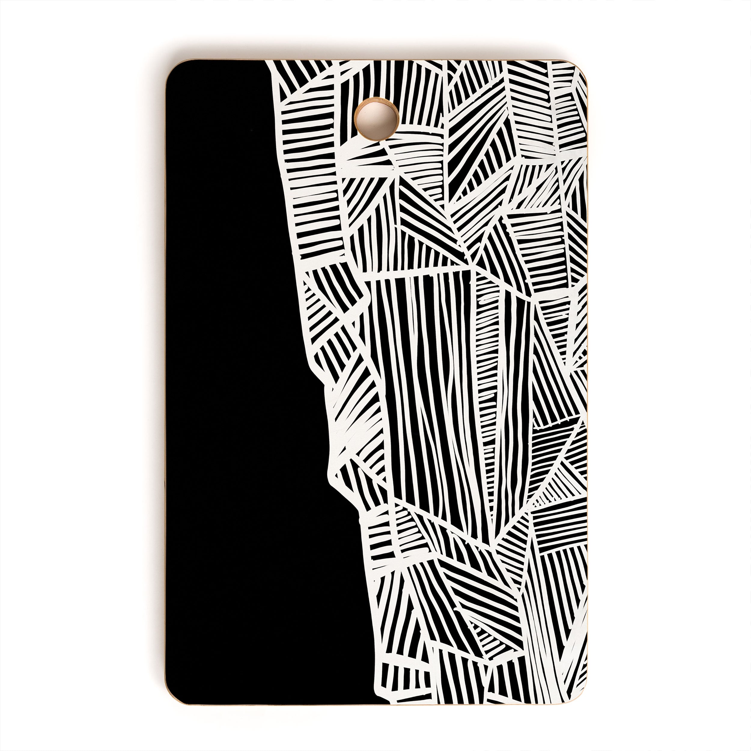 A must-have kitchen accessory any way you slice it. The Deny Designs cutting board is made from bamboo wood that won't look too heavy when integrated into your kitchen decor. Available in array of curated designs, the display side is printed with a satin finish that will pop when displayed on your counter or hung on the wall through the 1" handle. The prep side is a bamboo woodgrain that can be easily washed with a non-abrasive cloth. And the best part? Every purchase pays the artist who designed it—supporting creativity worldwide.