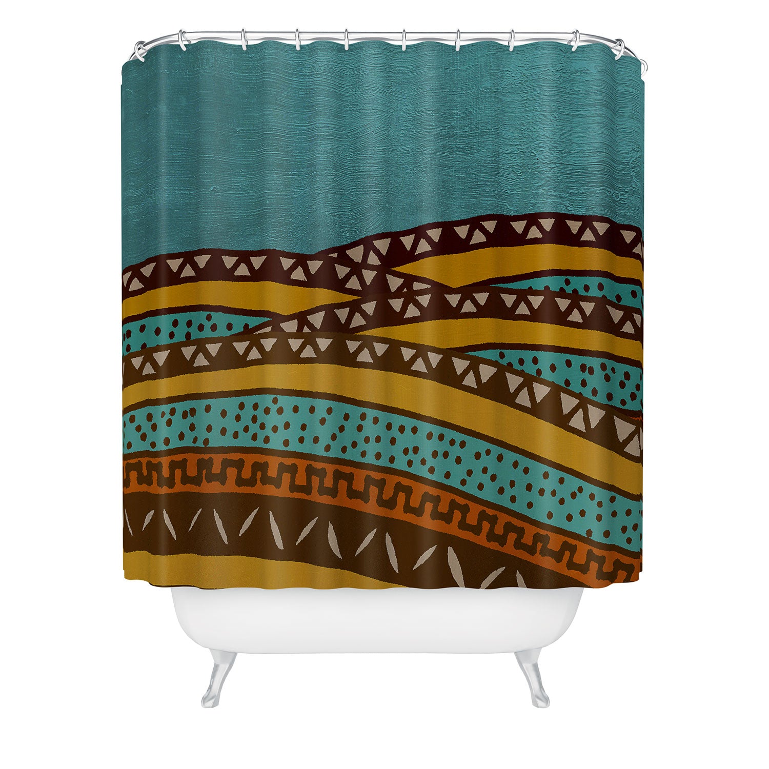 Set the stage. The Deny Designs shower curtain is crafted from 100% woven polyester and makes the perfect backdrop for whatever your bathroom decor may be. Adding some design to your shower curtains is a great way to make a statement in a room known for presenting plenty of design challenges. The buttonhole openings along the top means that you're free to use any curtain rings or hooks you please. And the best part? Every purchase pays the artist who designed it—supporting creativity worldwide.