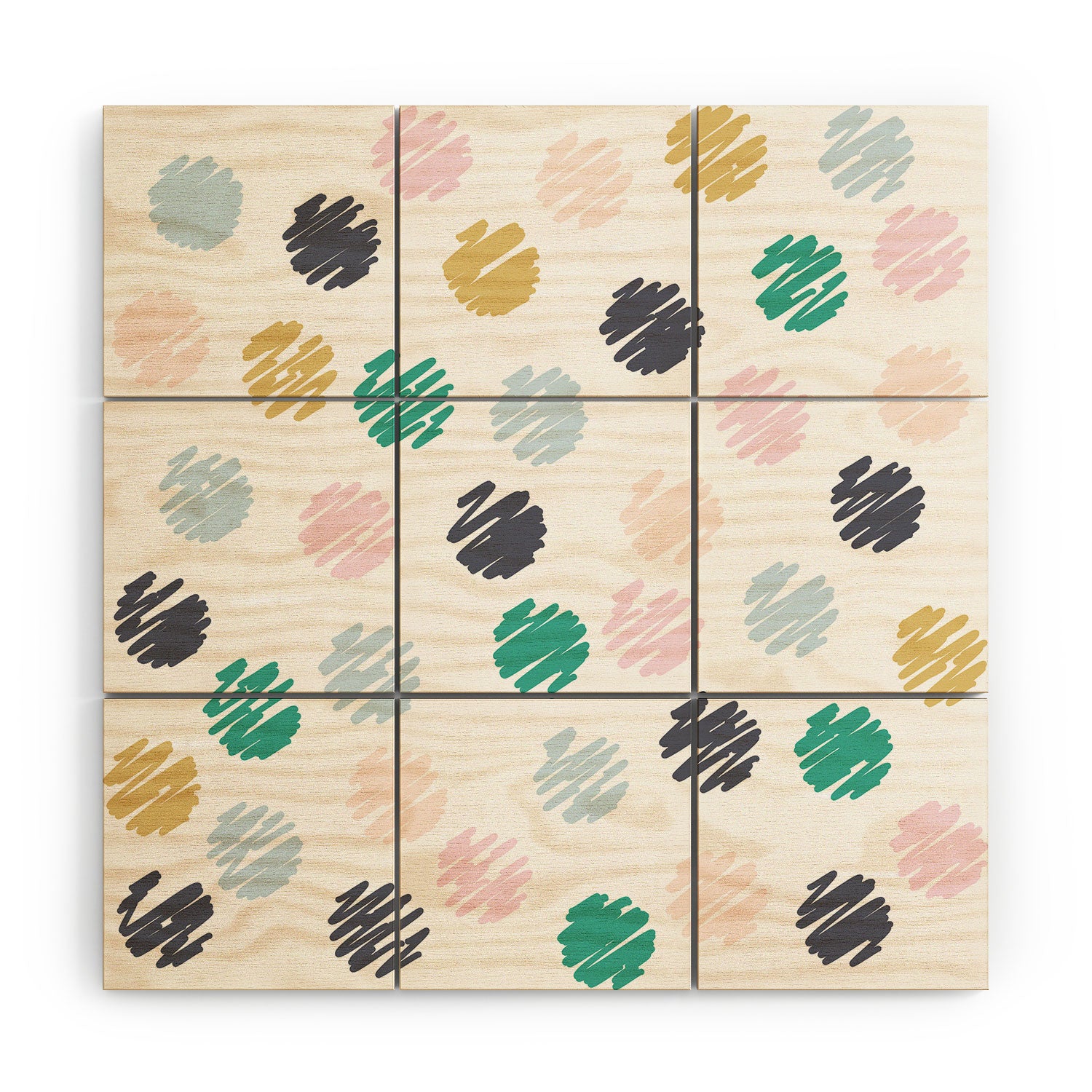 Vy La Polka Dot Scribbles Pastels Wood Wall Mural