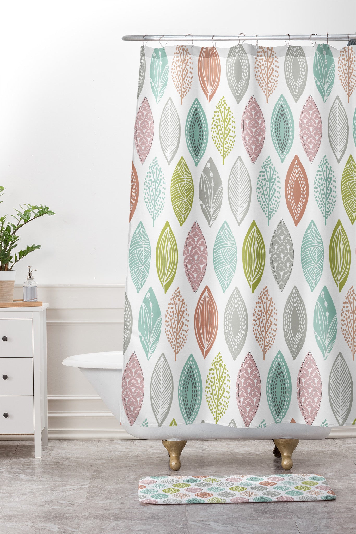 Wendy Kendall Leaf Pod Shower Curtain And Mat