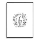 Wonder Forest Folky Forest Monogram Letter G Metal Framed Art Print