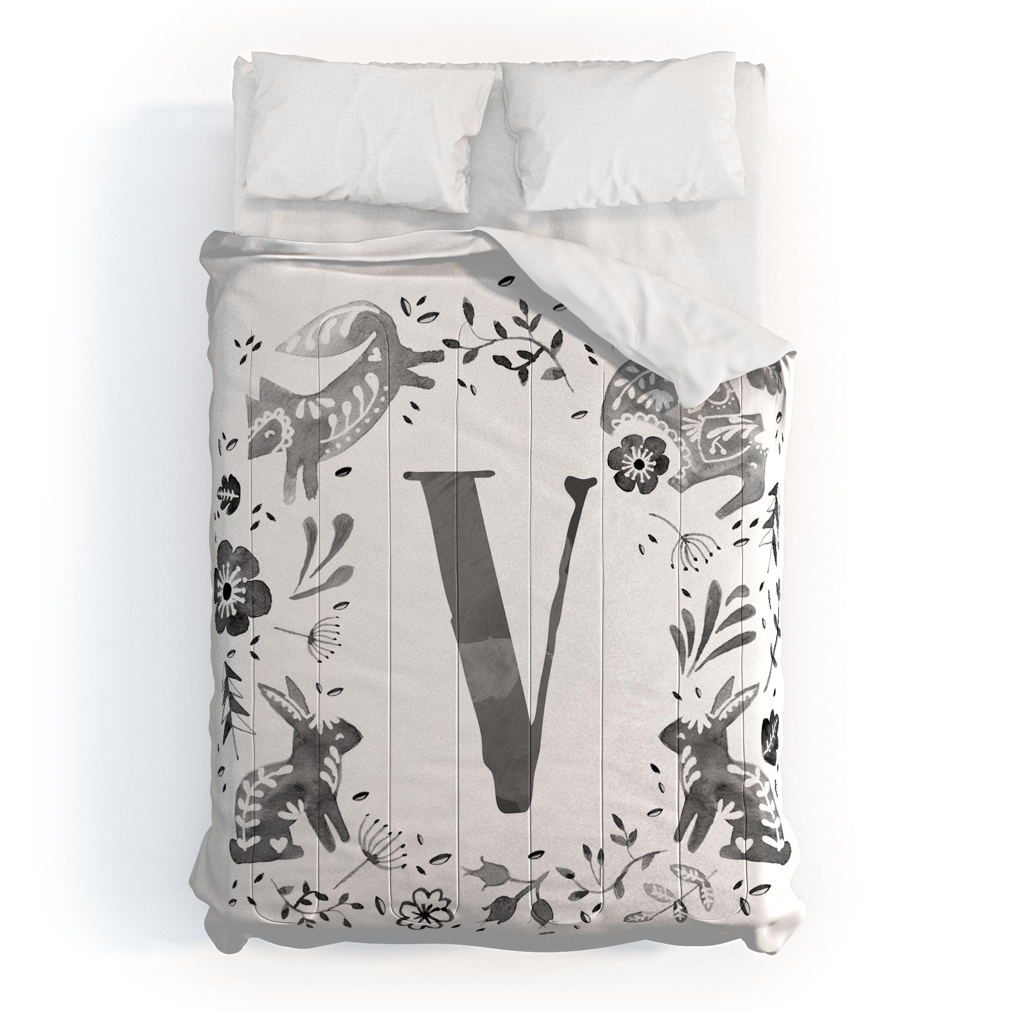Wonder Forest Folky Forest Monogram Letter V Comforter