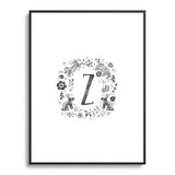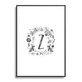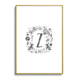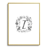 Wonder Forest Folky Forest Monogram Letter Z Metal Framed Art Print